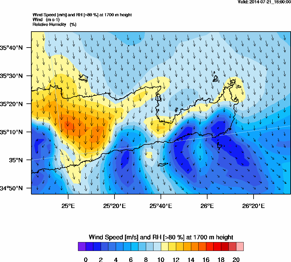 Graph 5: arw070.png - Wind Speed [m/s] and RH [>80%] at 1700 m height