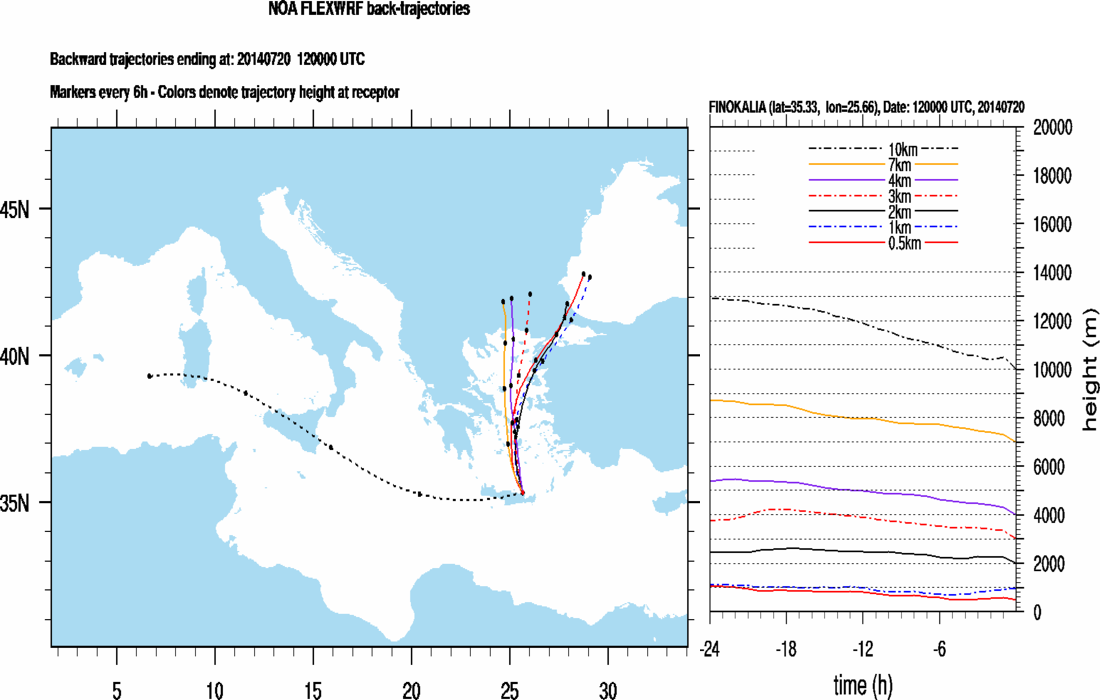 Graph 1: Backtrajectories forecast for Finokalia (+ 24 h)