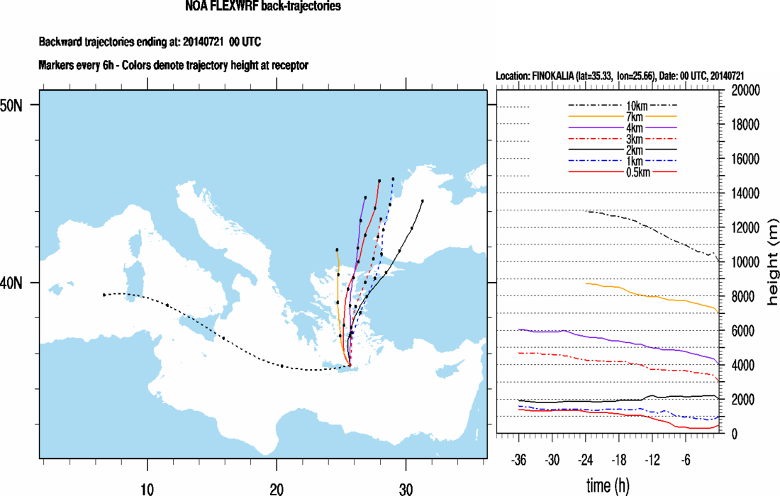 Graph 2: Backtrajectories forecast for Finokalia (+ 36 h)