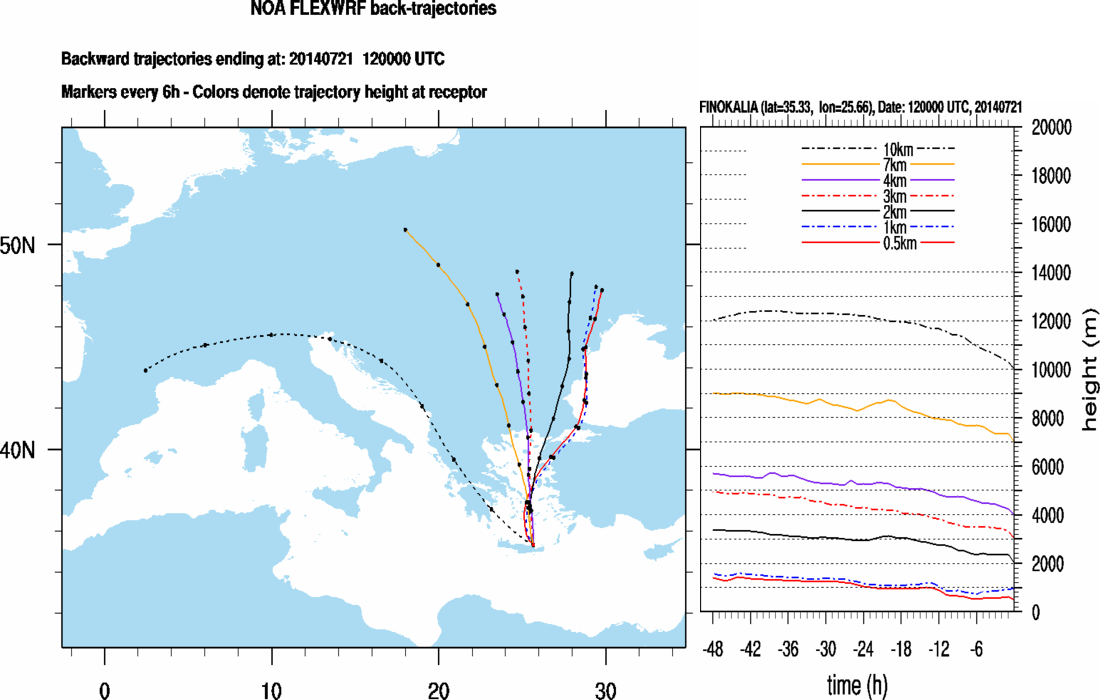 Graph 3: Backtrajectories forecast for Finokalia (+ 48 h)