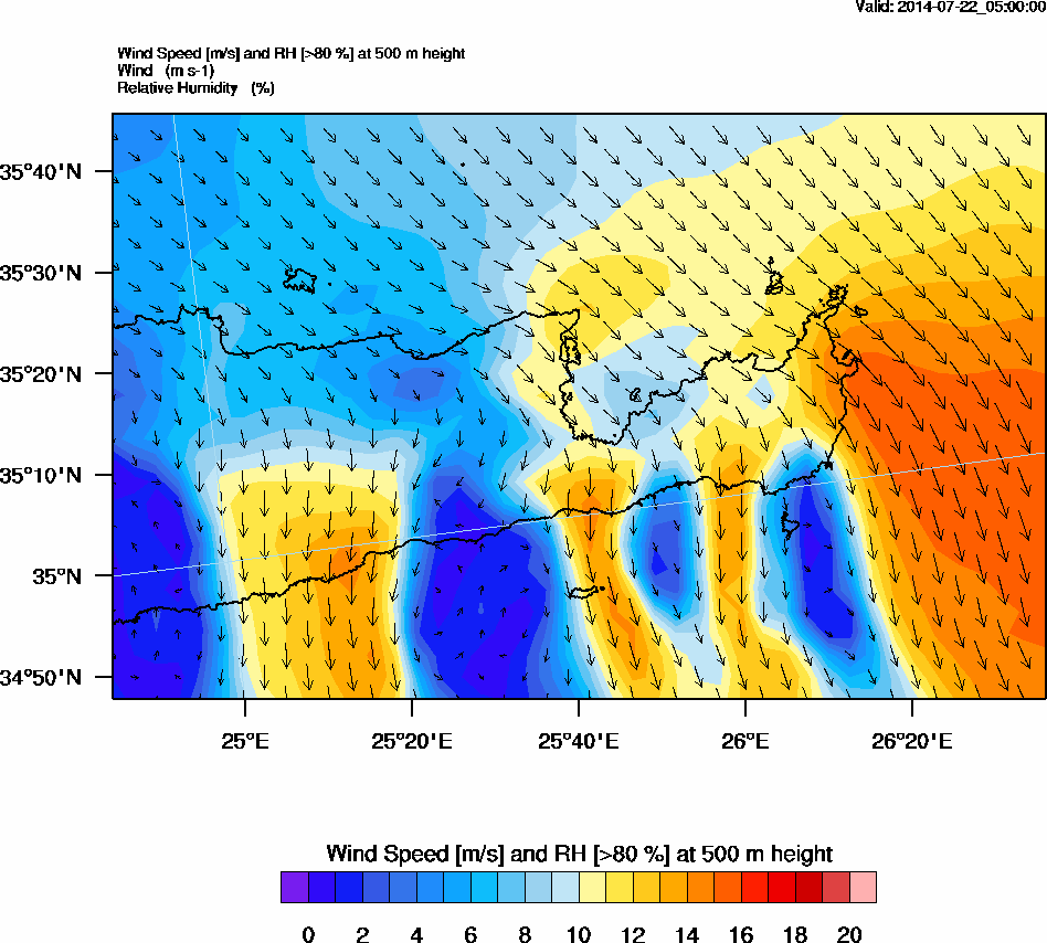 Graph 2: arw012.png - Wind Speed [m/s] and RH [>80%] at 500 m height