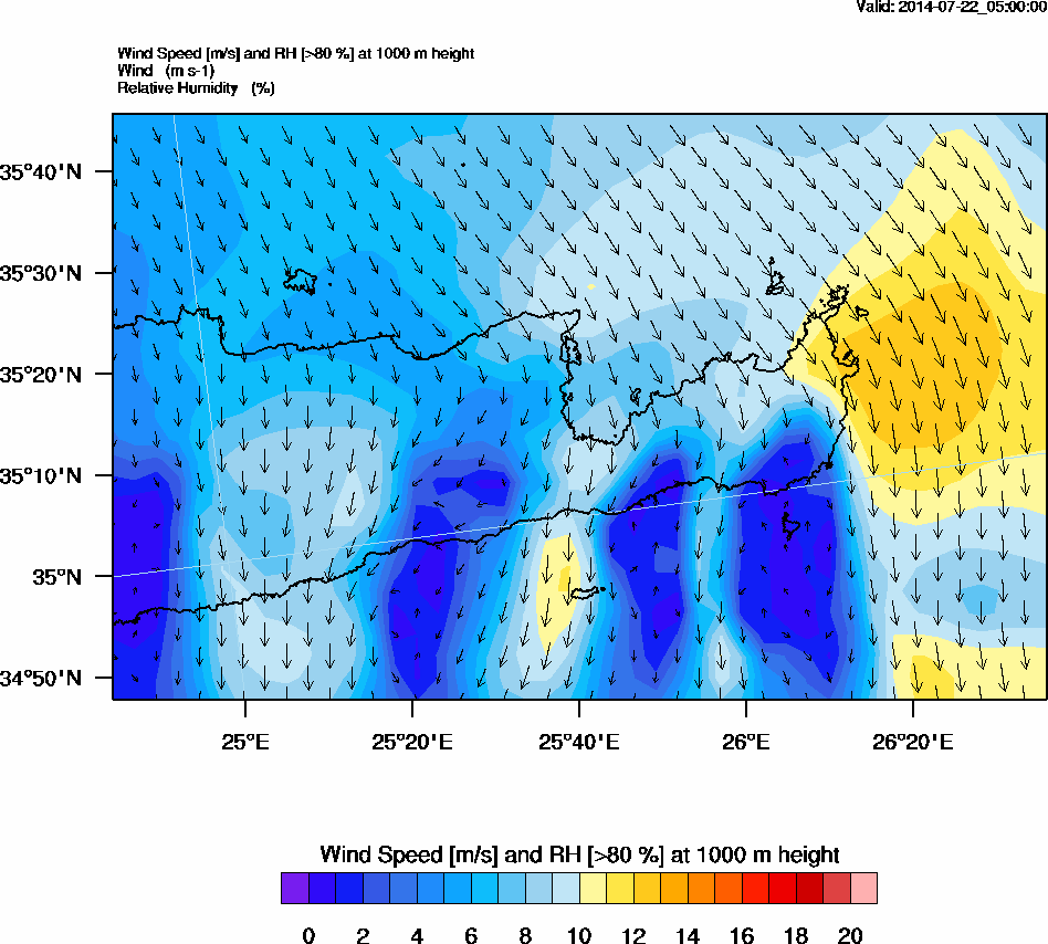 Graph 3: arw013.png - Wind Speed [m/s] and RH [>80%] at 1000 m height