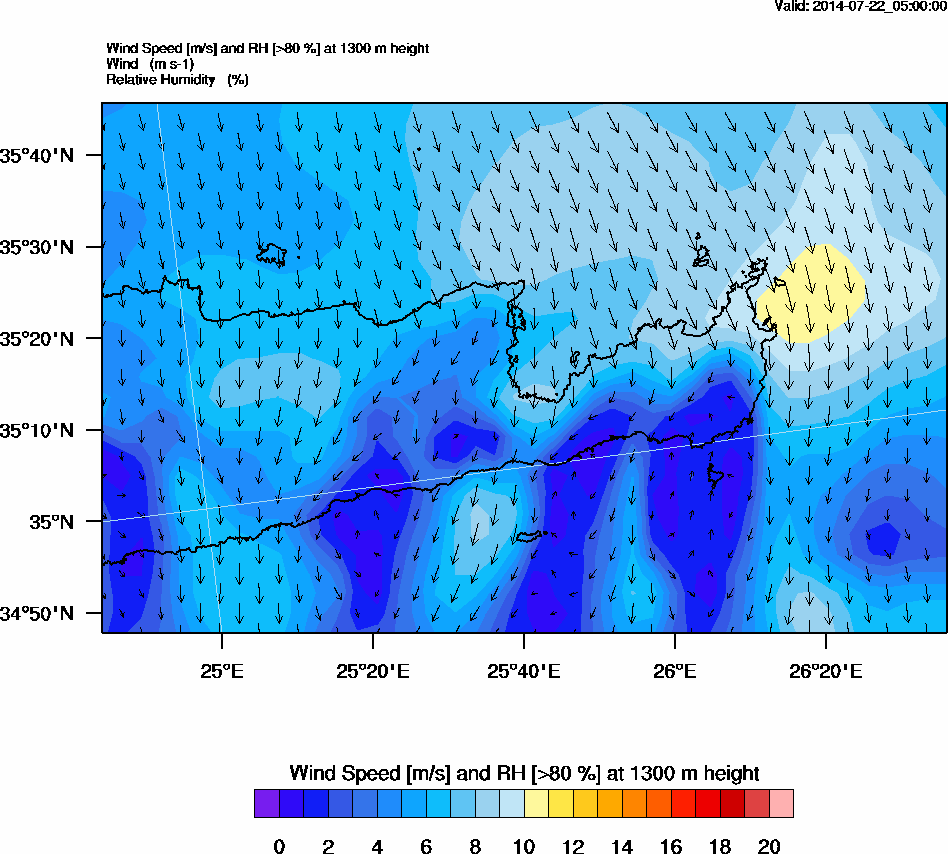 Graph 4: arw014.png - Wind Speed [m/s] and RH [>80%] at 1300 m height