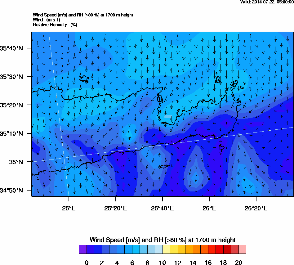 Graph 5: arw015.png - Wind Speed [m/s] and RH [>80%] at 1700 m height