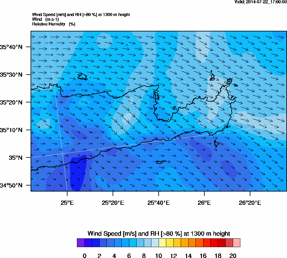Graph 4: arw074.png - Wind Speed [m/s] and RH [>80%] at 1300 m height