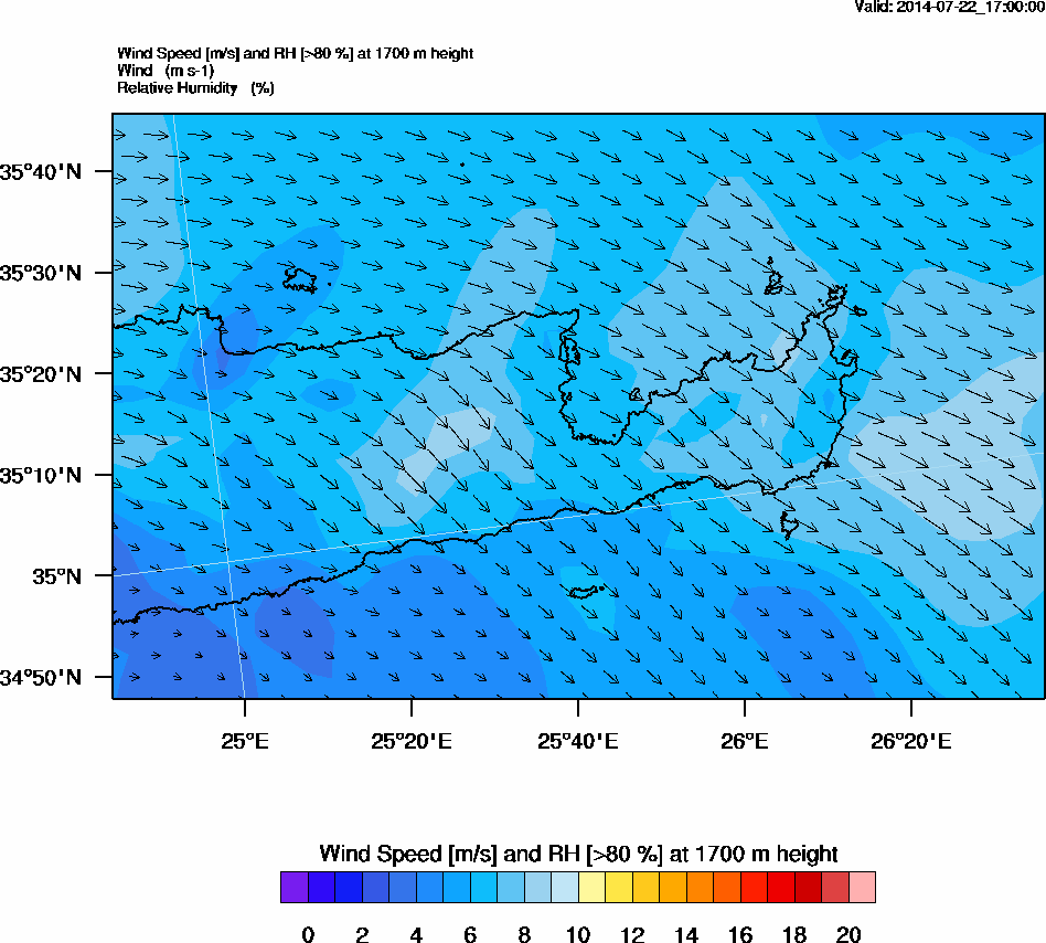 Graph 5: arw075.png - Wind Speed [m/s] and RH [>80%] at 1700 m height