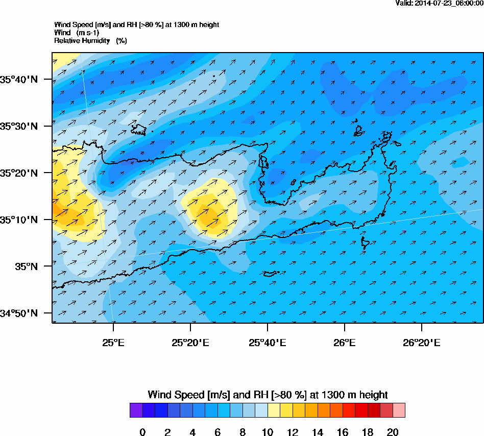 Graph 4: arw019.png - Wind Speed [m/s] and RH [>80%] at 1300 m height