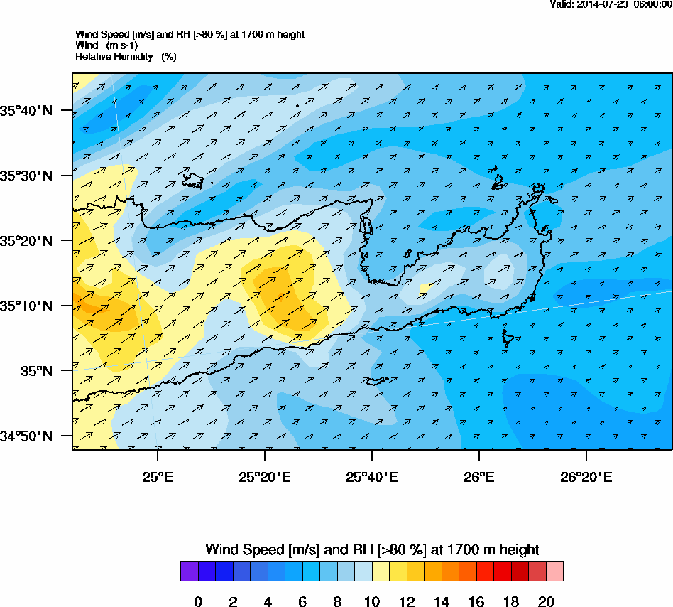 Graph 5: arw020.png - Wind Speed [m/s] and RH [>80%] at 1700 m height
