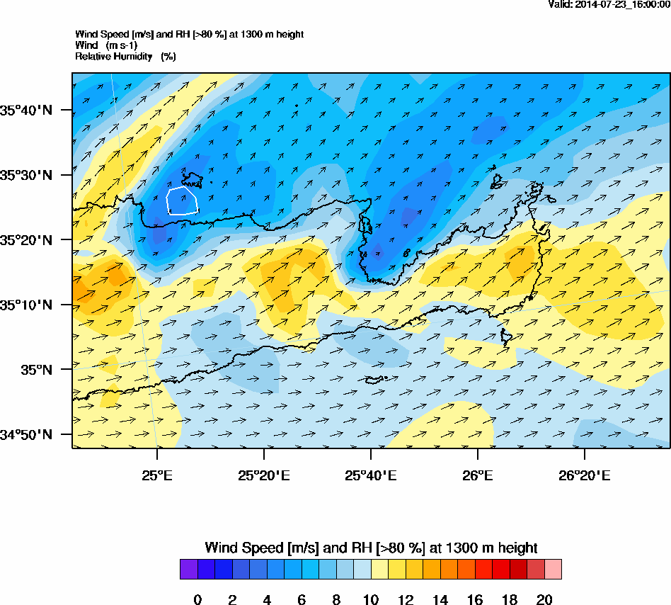 Graph 4: arw069.png - Wind Speed [m/s] and RH [>80%] at 1300 m height