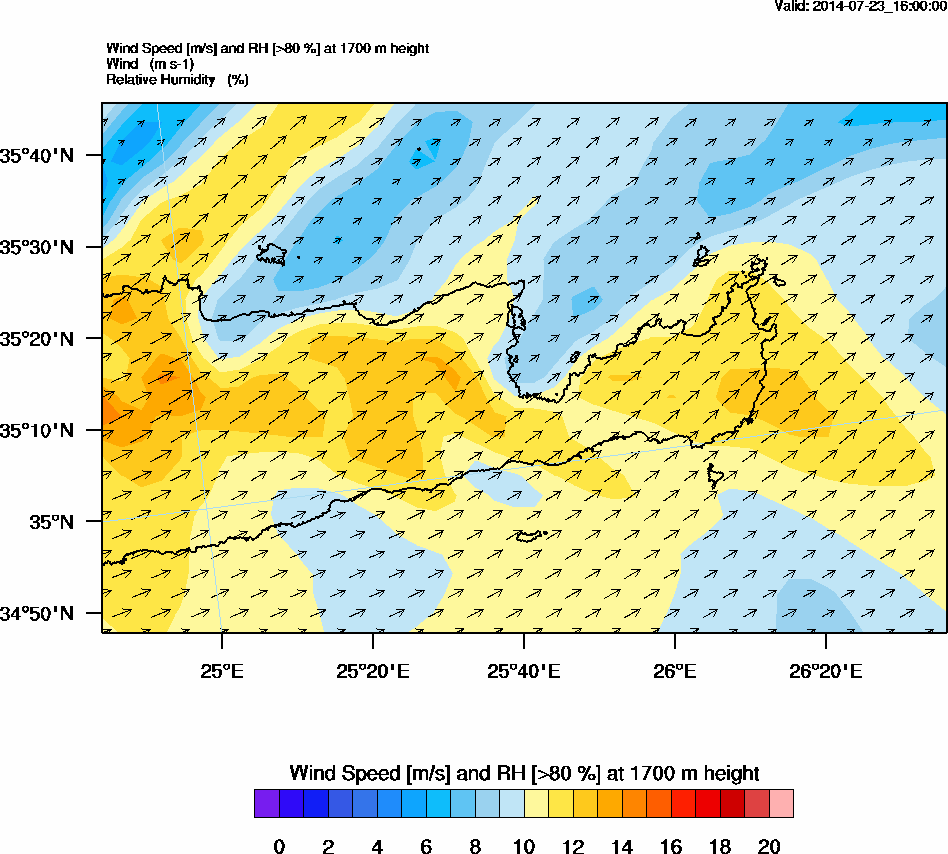 Graph 5: arw070.png - Wind Speed [m/s] and RH [>80%] at 1700 m height