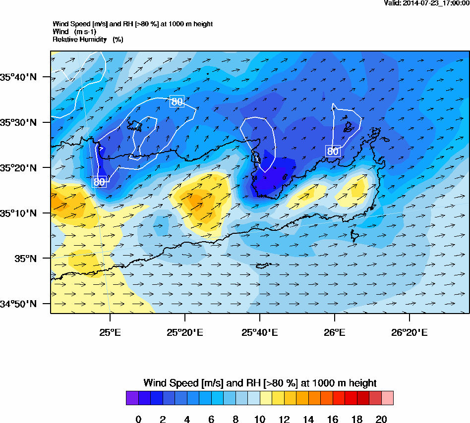 Graph 3: arw073.png - Wind Speed [m/s] and RH [>80%] at 1000 m height