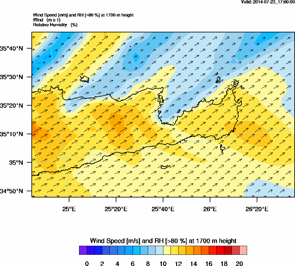 Graph 5: arw075.png - Wind Speed [m/s] and RH [>80%] at 1700 m height