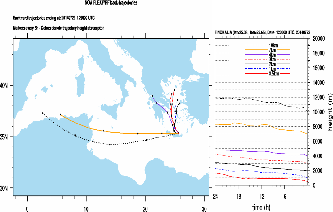 Graph 1: Backtrajectories forecast for Finokalia (+ 24 h)