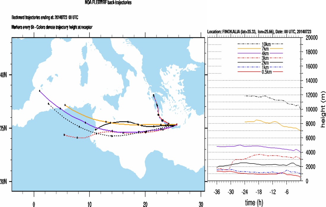 Graph 2: Backtrajectories forecast for Finokalia (+ 36 h)