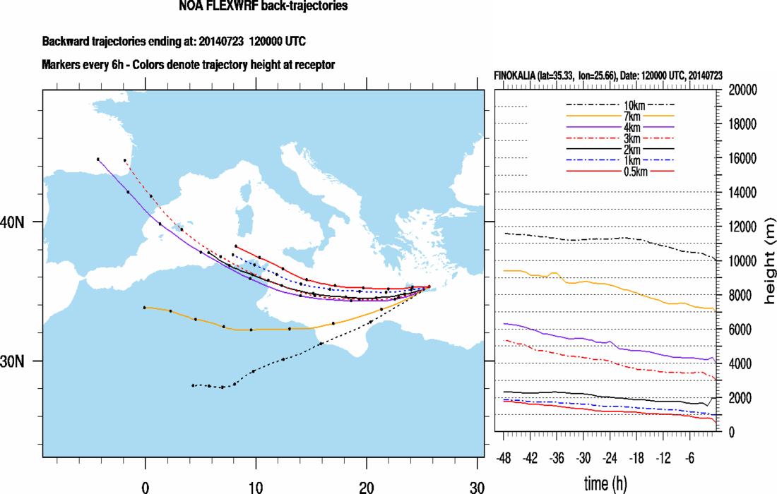Graph 3: Backtrajectories forecast for Finokalia (+ 48 h)
