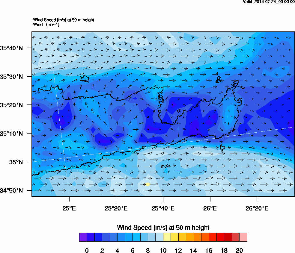 Graph 1: arw001.png - Wind Speed [m/s] at 50 m height