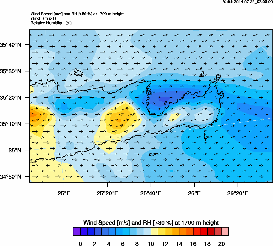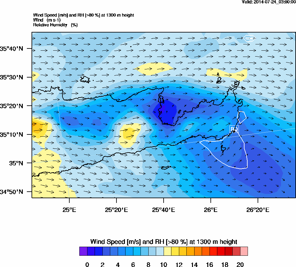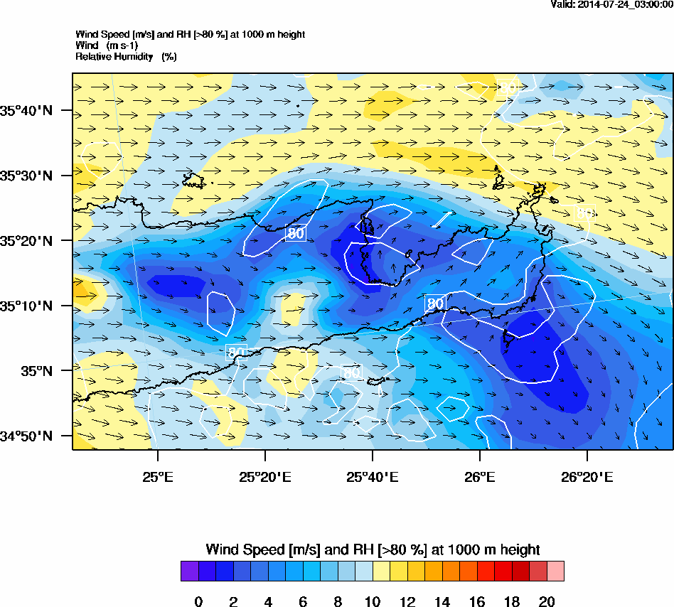 Graph 3: arw003.png - Wind Speed [m/s] and RH [>80%] at 1000 m height