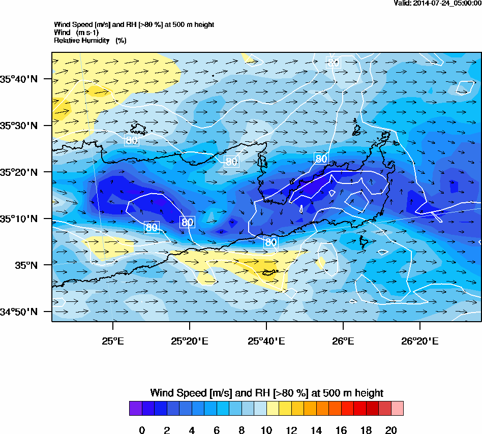Graph 2: arw012.png - Wind Speed [m/s] and RH [>80%] at 500 m height