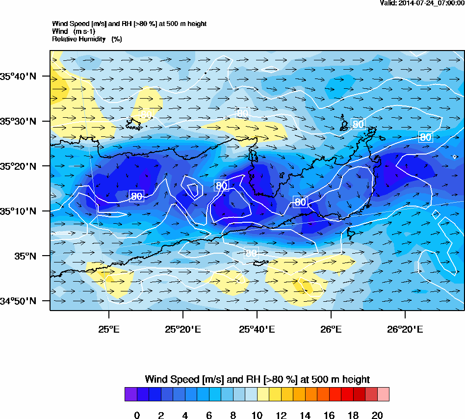 Graph 2: arw022.png - Wind Speed [m/s] and RH [>80%] at 500 m height