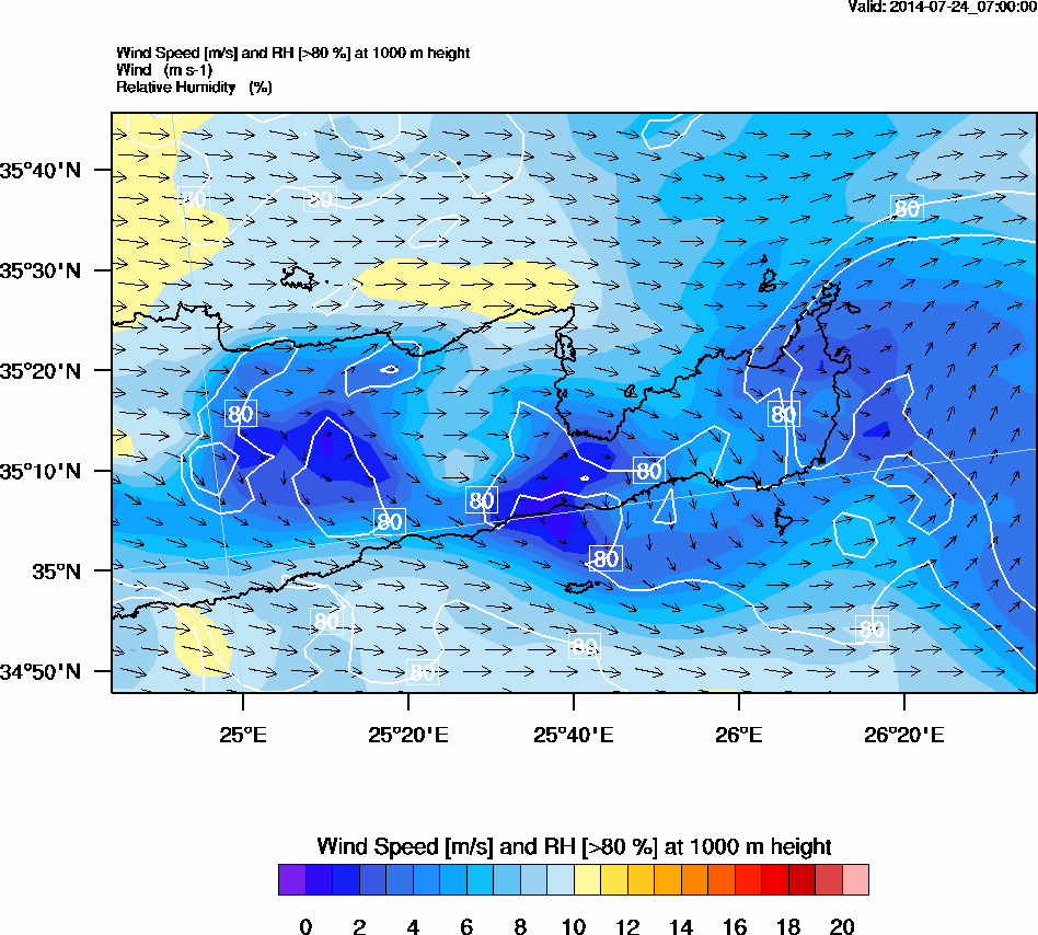 Graph 3: arw023.png - Wind Speed [m/s] and RH [>80%] at 1000 m height