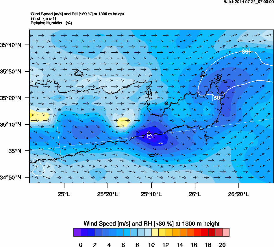 Graph 4: arw024.png - Wind Speed [m/s] and RH [>80%] at 1300 m height