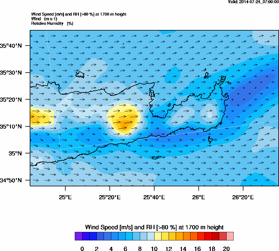 Graph 5: arw025.png - Wind Speed [m/s] and RH [>80%] at 1700 m height