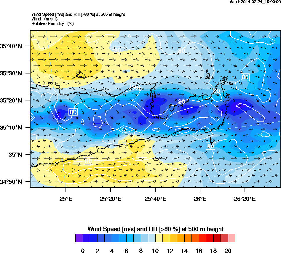 Graph 2: arw037.png - Wind Speed [m/s] and RH [>80%] at 500 m height