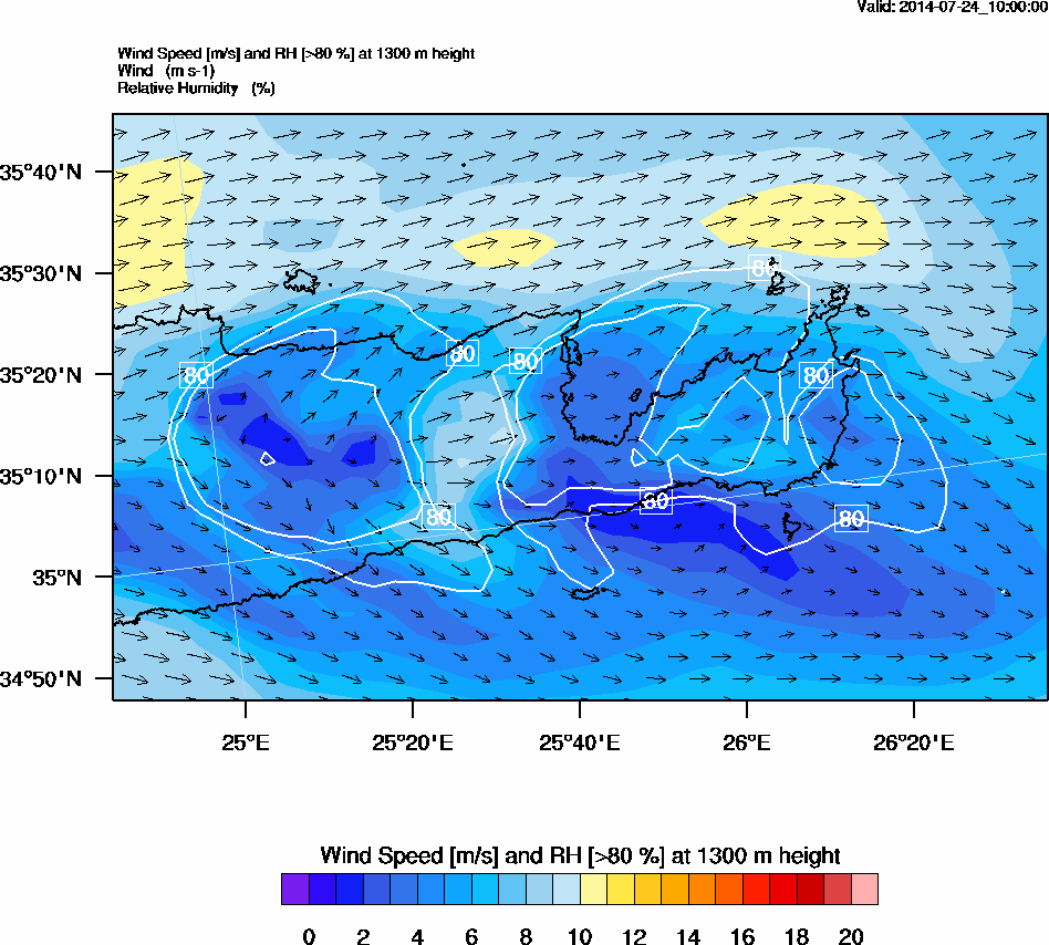 Graph 4: arw039.png - Wind Speed [m/s] and RH [>80%] at 1300 m height