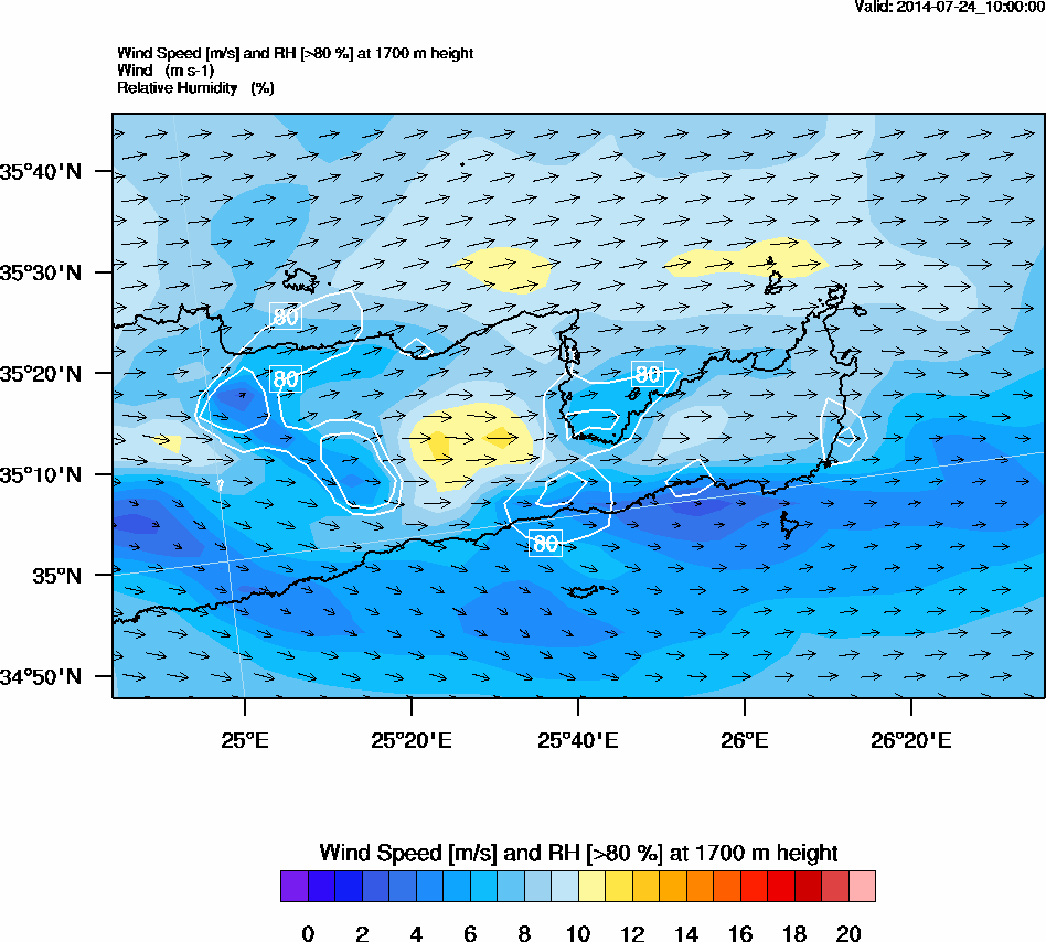 Graph 5: arw040.png - Wind Speed [m/s] and RH [>80%] at 1700 m height