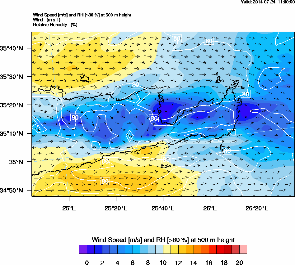 Graph 2: arw042.png - Wind Speed [m/s] and RH [>80%] at 500 m height