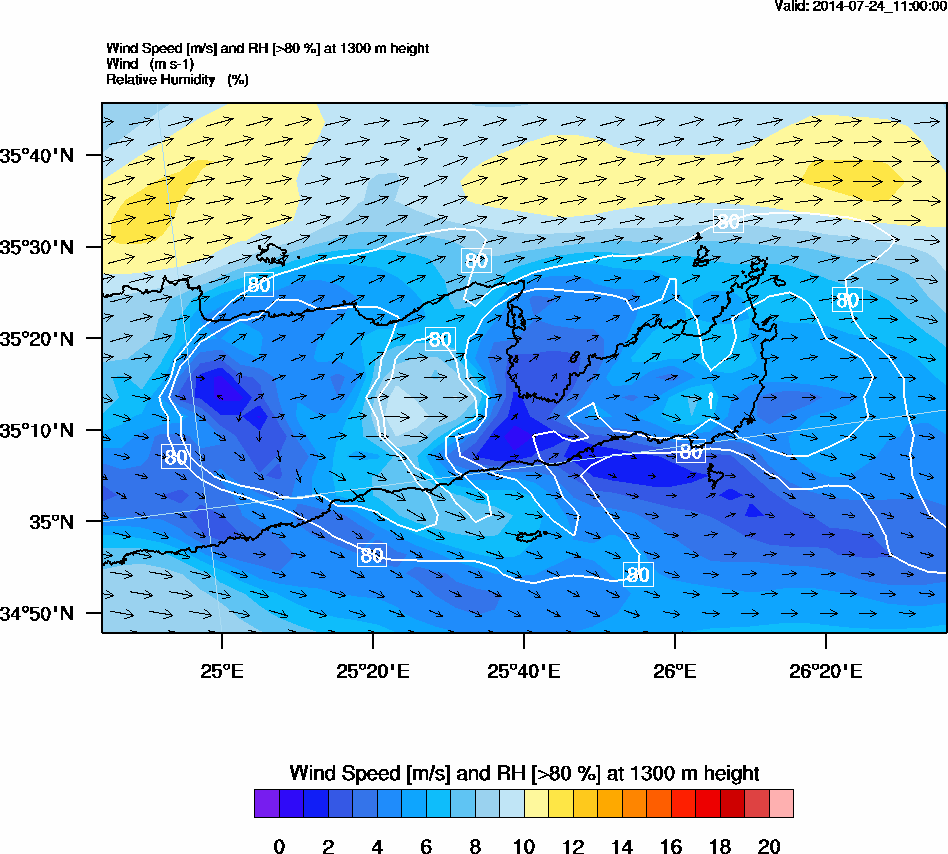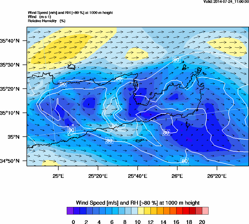 Graph 3: arw043.png - Wind Speed [m/s] and RH [>80%] at 1000 m height