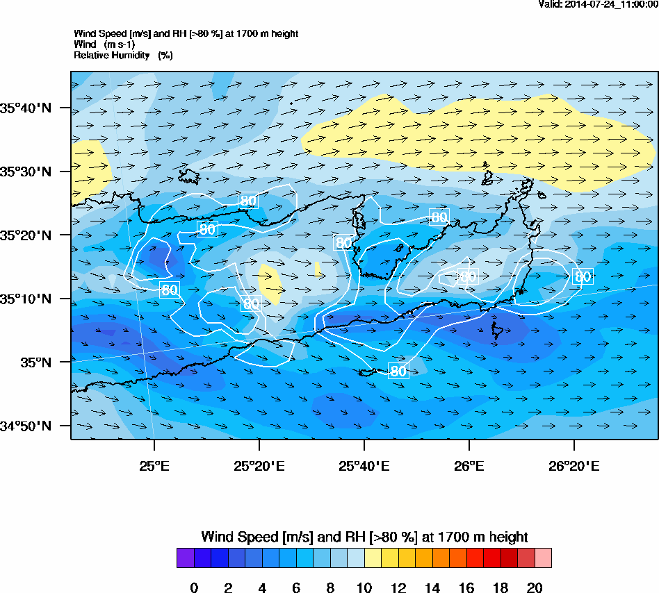 Graph 5: arw045.png - Wind Speed [m/s] and RH [>80%] at 1700 m height