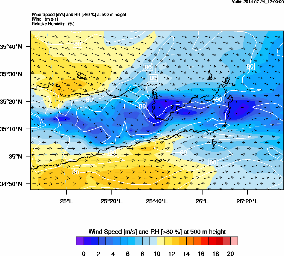 Graph 2: arw047.png - Wind Speed [m/s] and RH [>80%] at 500 m height