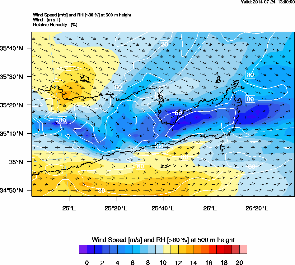 Graph 2: arw052.png - Wind Speed [m/s] and RH [>80%] at 500 m height