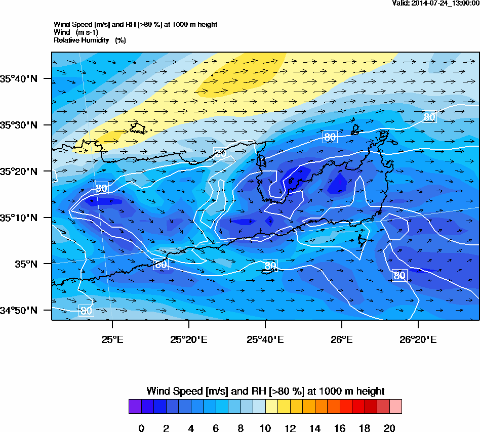 Graph 3: arw053.png - Wind Speed [m/s] and RH [>80%] at 1000 m height