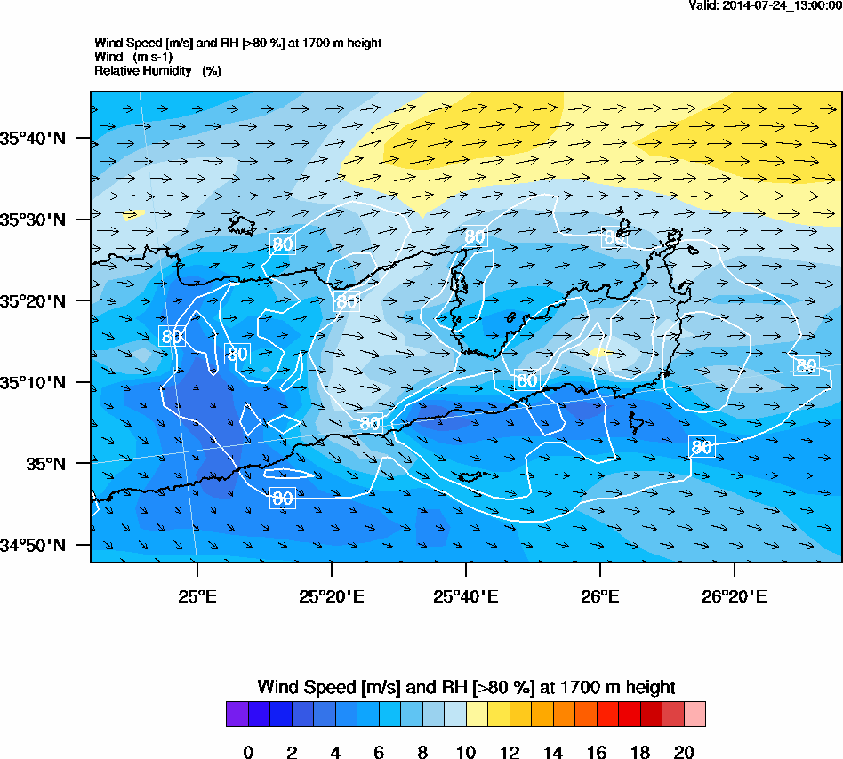 Graph 5: arw055.png - Wind Speed [m/s] and RH [>80%] at 1700 m height