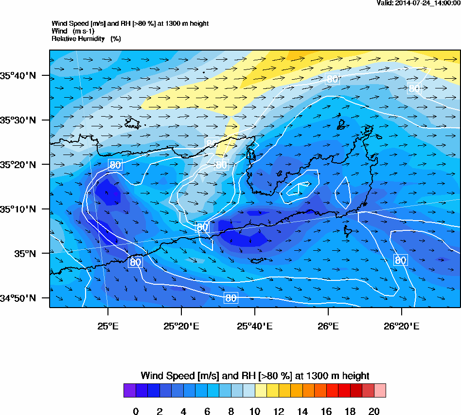 Graph 4: arw059.png - Wind Speed [m/s] and RH [>80%] at 1300 m height
