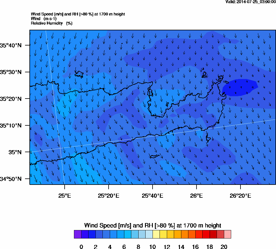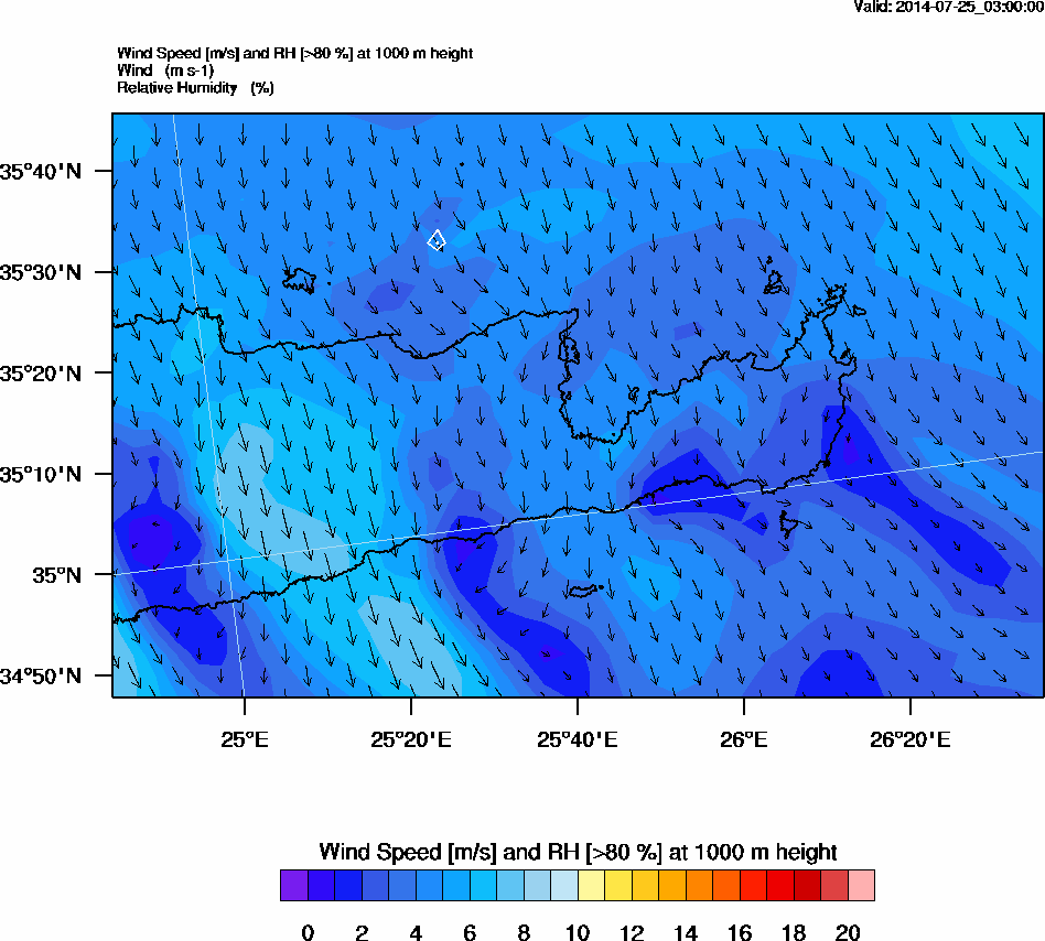Graph 3: arw003.png - Wind Speed [m/s] and RH [>80%] at 1000 m height