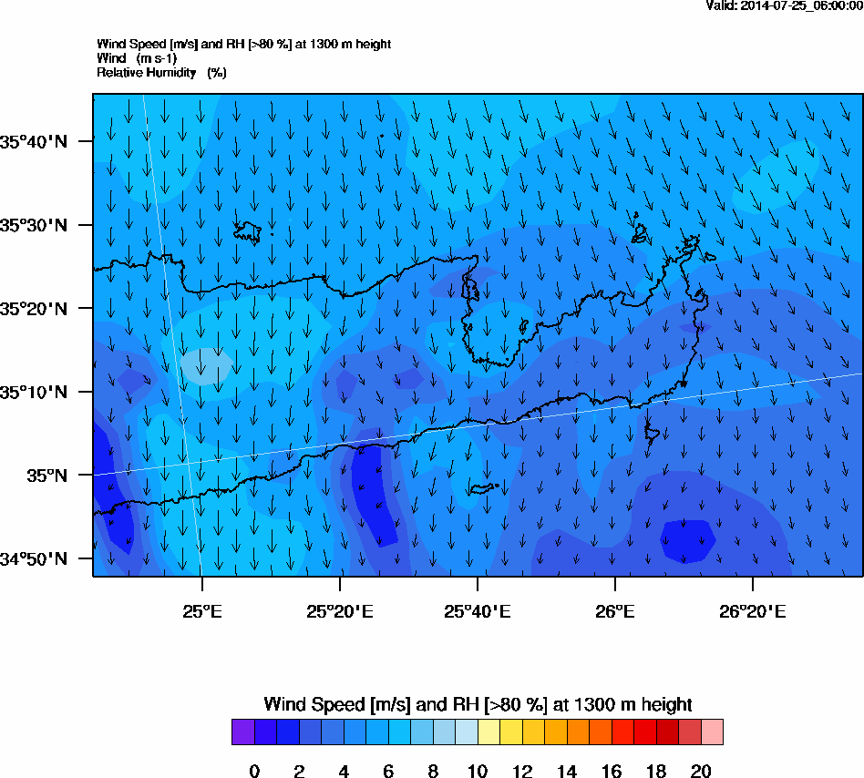 Graph 4: arw019.png - Wind Speed [m/s] and RH [>80%] at 1300 m height