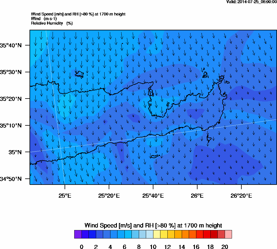 Graph 5: arw020.png - Wind Speed [m/s] and RH [>80%] at 1700 m height