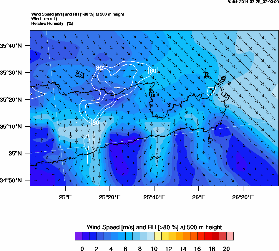 Graph 2: arw022.png - Wind Speed [m/s] and RH [>80%] at 500 m height
