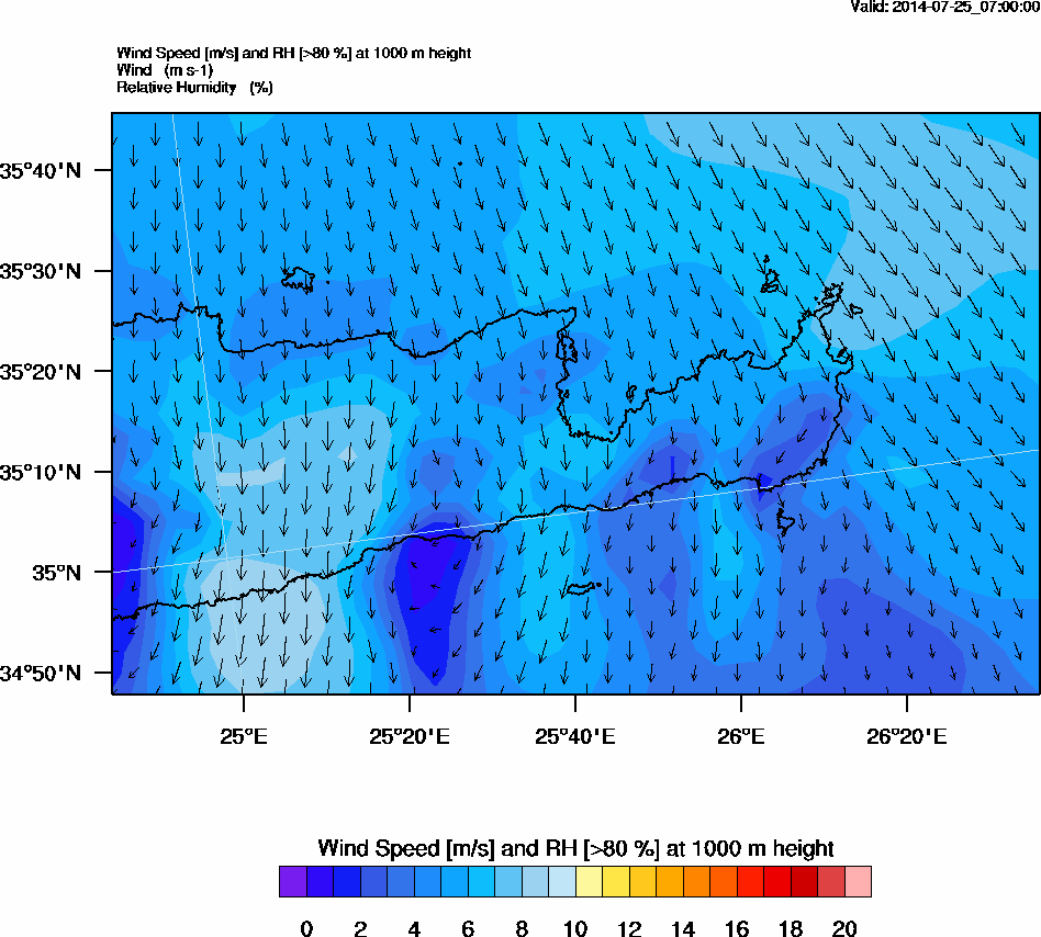 Graph 3: arw023.png - Wind Speed [m/s] and RH [>80%] at 1000 m height