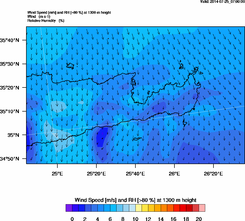 Graph 4: arw024.png - Wind Speed [m/s] and RH [>80%] at 1300 m height