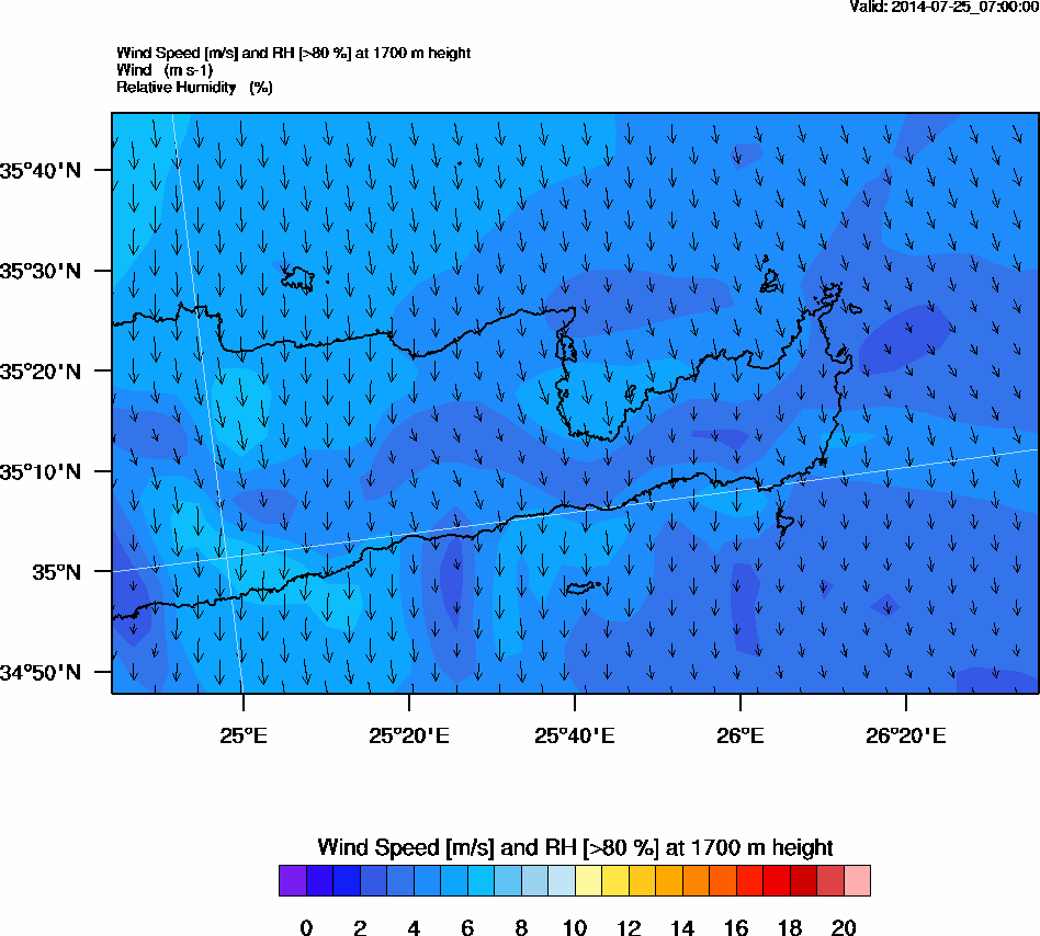 Graph 5: arw025.png - Wind Speed [m/s] and RH [>80%] at 1700 m height