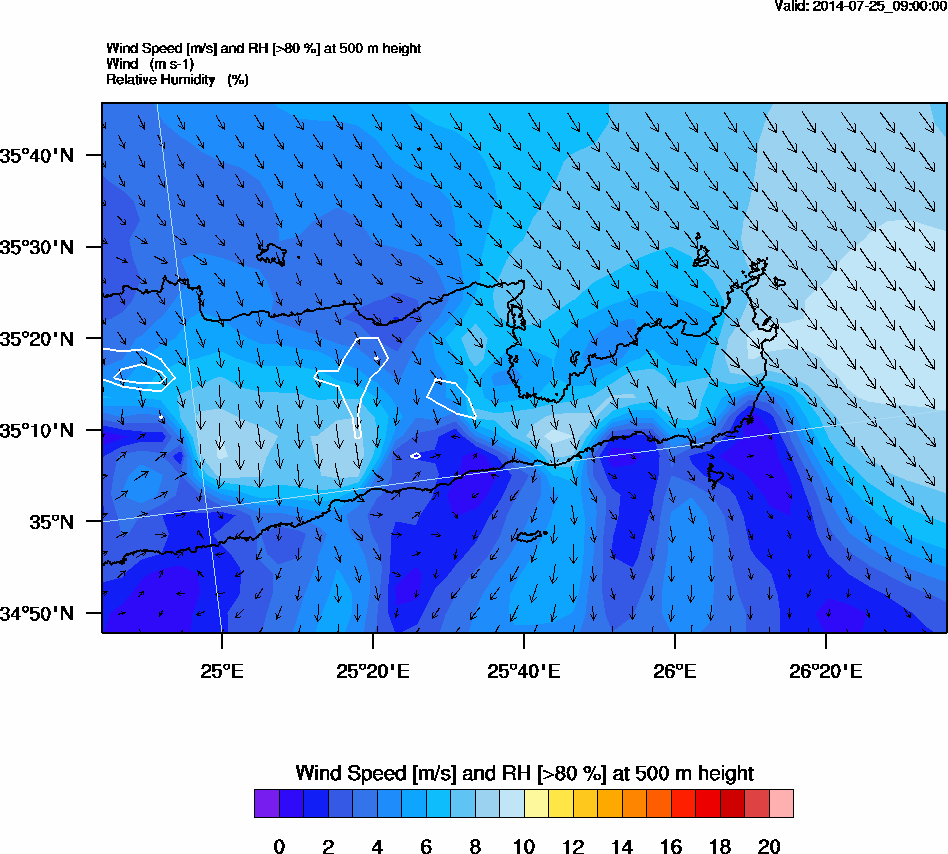 Graph 2: arw032.png - Wind Speed [m/s] and RH [>80%] at 500 m height