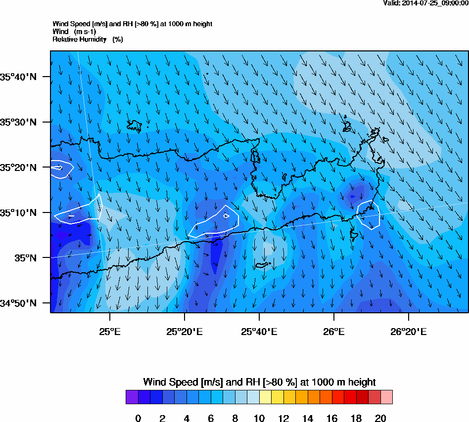 Graph 3: arw033.png - Wind Speed [m/s] and RH [>80%] at 1000 m height
