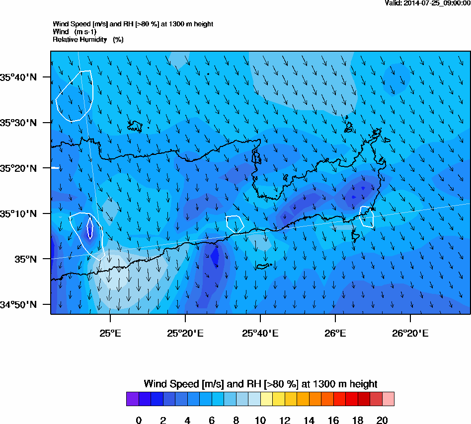 Graph 4: arw034.png - Wind Speed [m/s] and RH [>80%] at 1300 m height