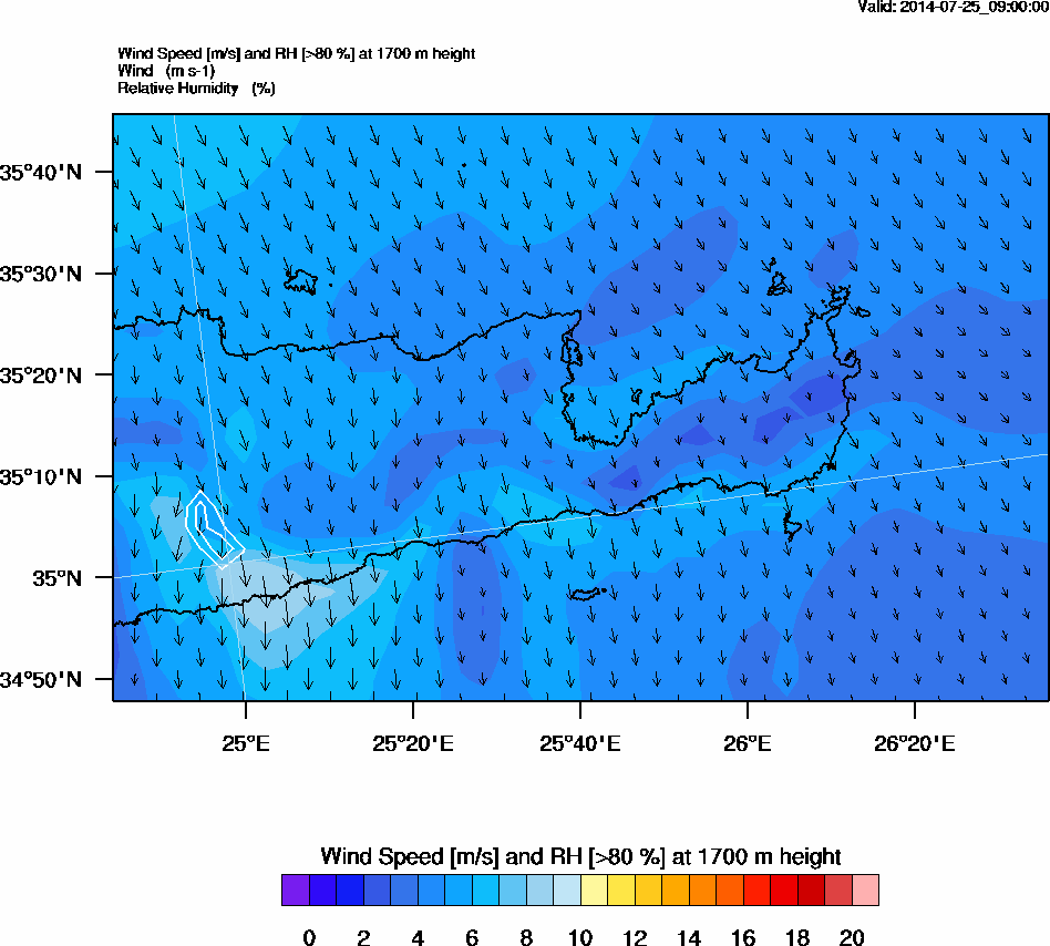 Graph 5: arw035.png - Wind Speed [m/s] and RH [>80%] at 1700 m height