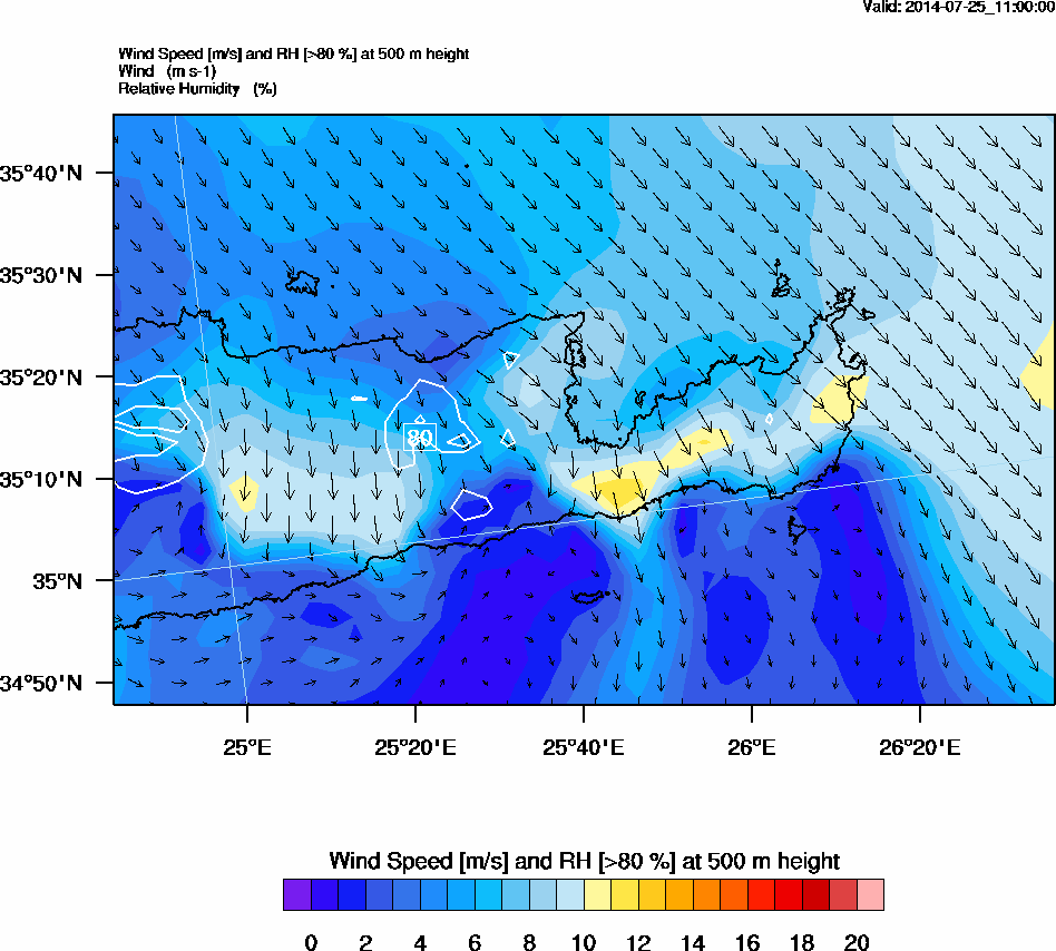 Graph 2: arw042.png - Wind Speed [m/s] and RH [>80%] at 500 m height