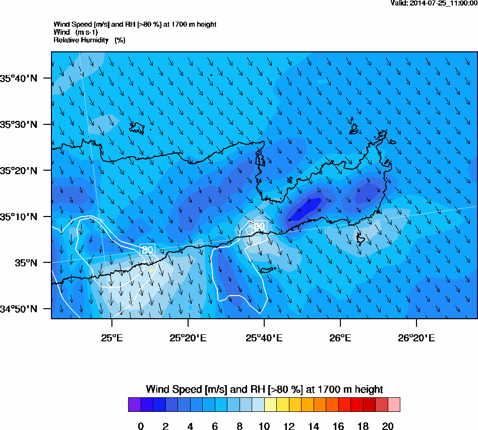 Graph 5: arw045.png - Wind Speed [m/s] and RH [>80%] at 1700 m height